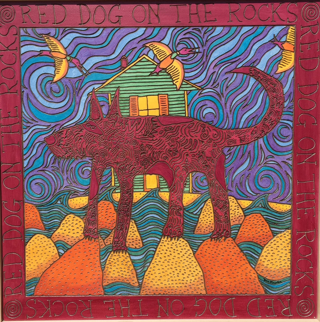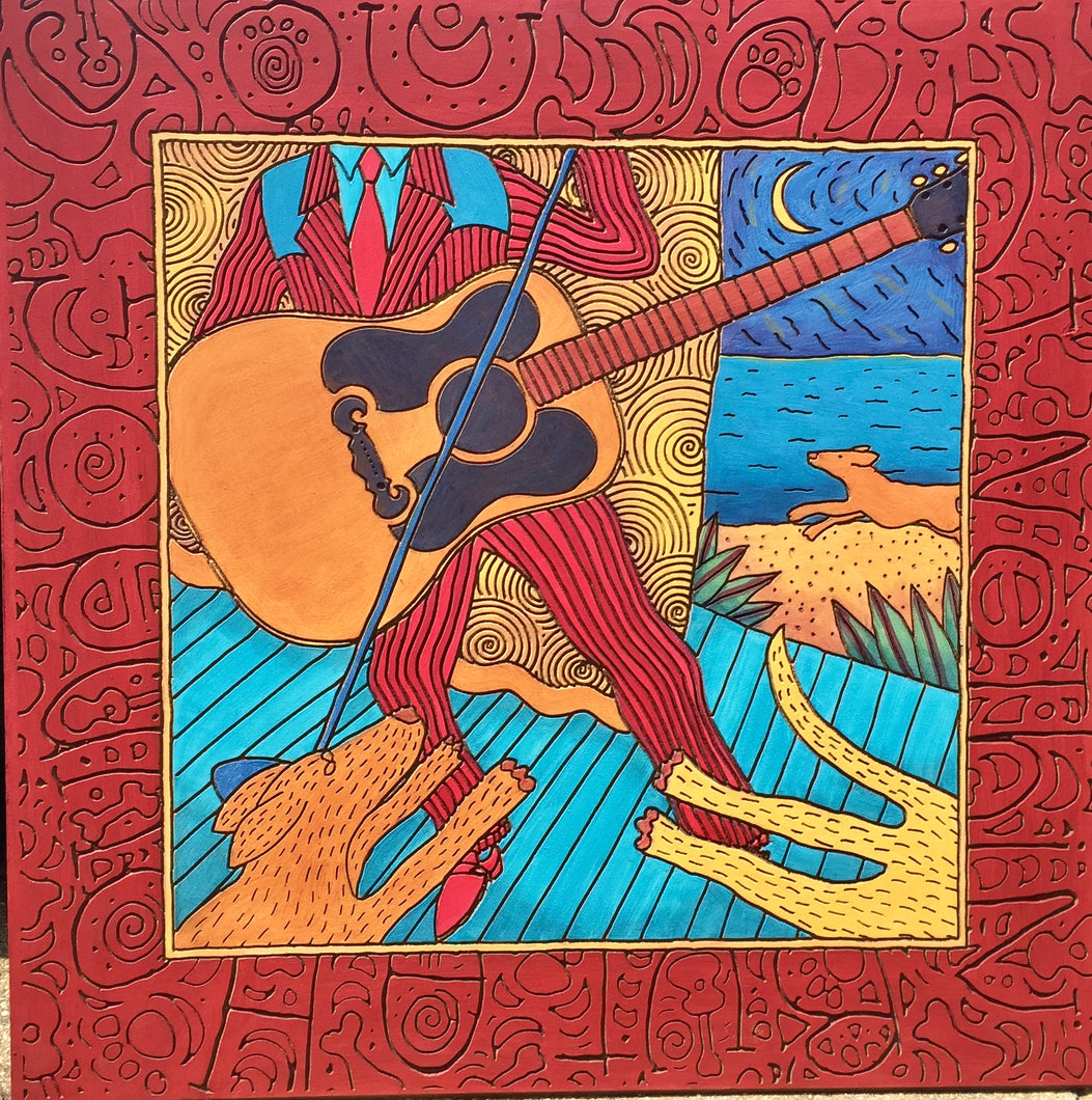 The imagery in these pieces are engraved into hardboard panels and painted with layers of transparent acrylic glazes, They are sealed with polyurethane clear coat and framed in maple. Ready To hang . These pieces may take additional time to finish and ship. Contact me for specific pieces.
